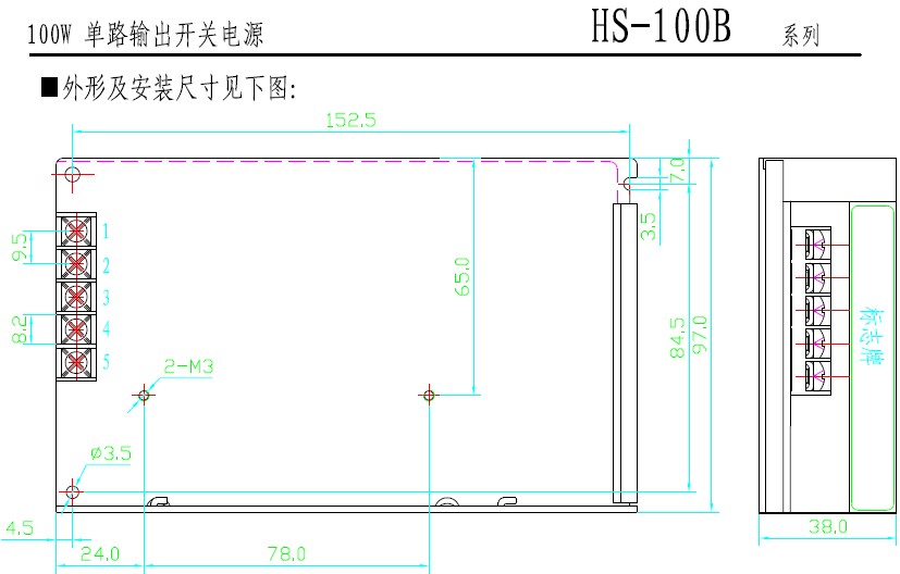 型号规格:HS-100B单路输出开关电源 |