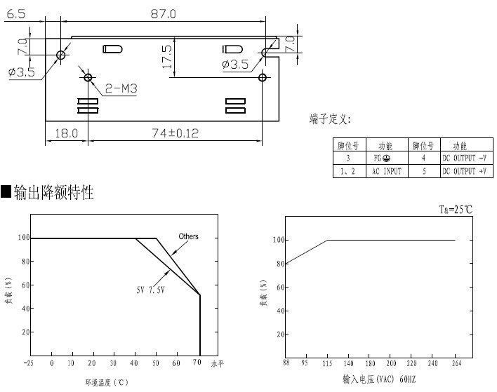 1.所有参数在未特别指明时,都是在230VAC电压输入,额定负载和25℃条件下测量所得值。