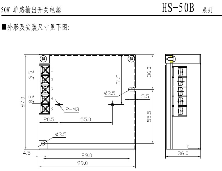 型号规格:HS-50B单路输出开关电源 |