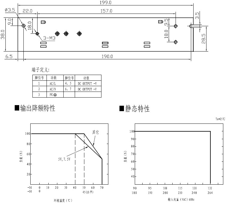 90 ~ 132VAC /180~264由开关选择, 248 ~ 373VDC |