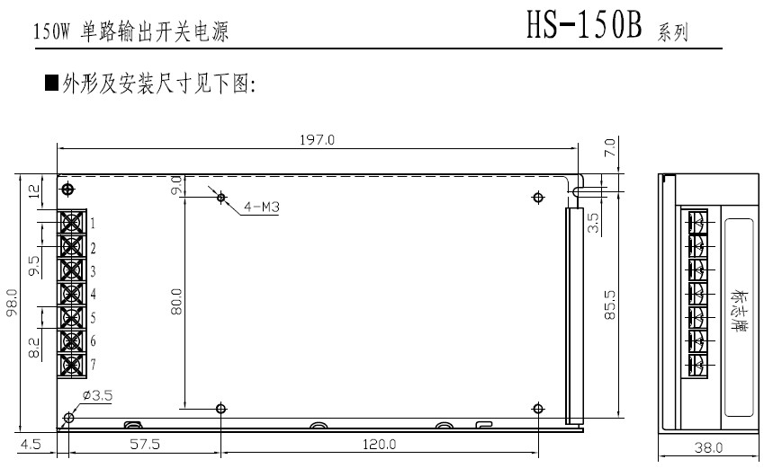 型号规格:HS-150B单路输出开关电源 |