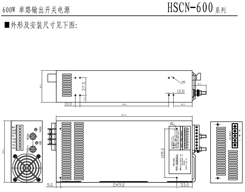 | 单路输出(普通大功率型) >> 上海明纬电源,开关电源官方网站HSCN-6OO |