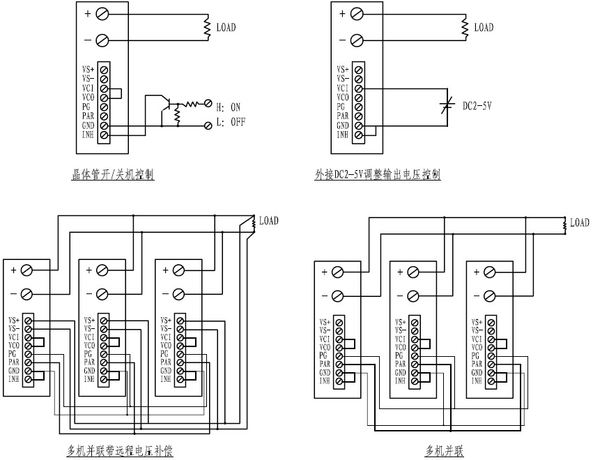 ±5%;由外部2~5V电压控制,可调节输出电压在额定电压的40%~100%范围值内 |