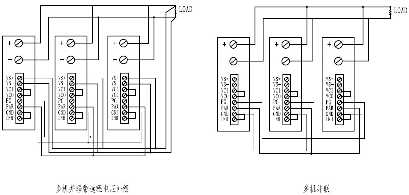 直流电压可调、远程控制和电压补偿信号接口、并联功能(参考端子使用说明) |