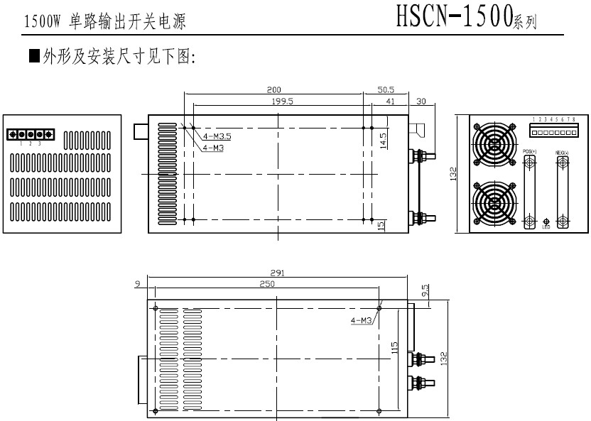 | 单路输出(普通大功率型) >> 明纬电子开关电源 HSCN-1500 |