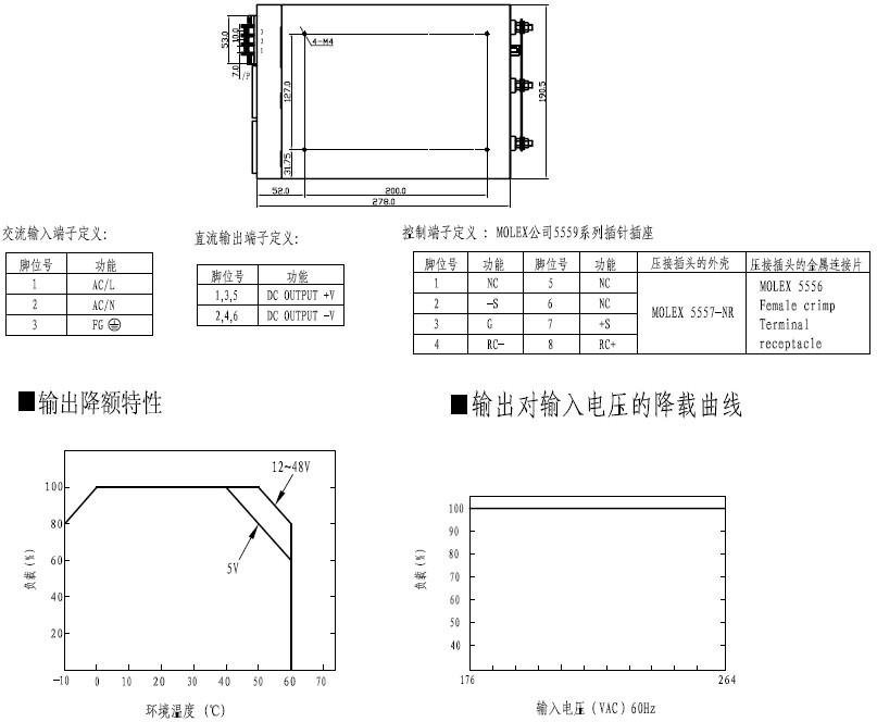 - 本电源考虑做为一个器件安装在最终设备上,该设备必须重新确认它的EMC指标。
