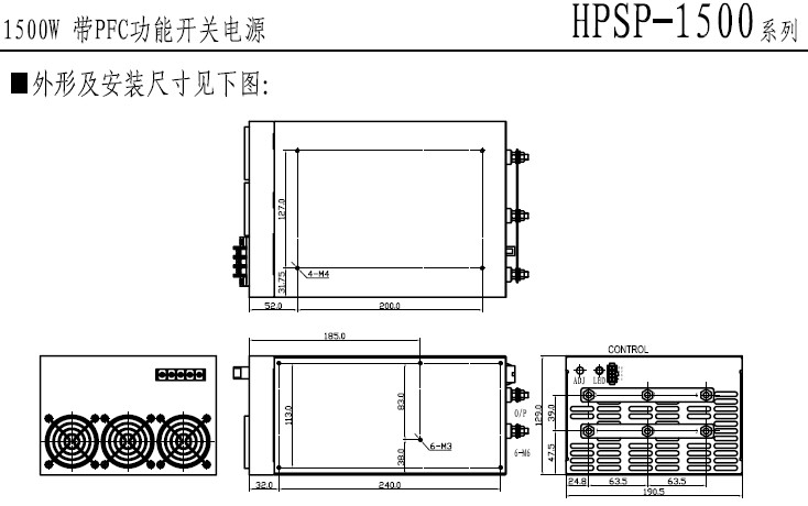 型号规格:HPSP-1500带PFC功能单路输出开关电源 |