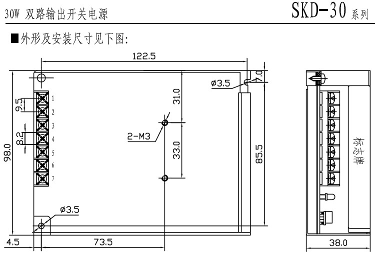 型号规格:HD-30单路输出开关电源 |