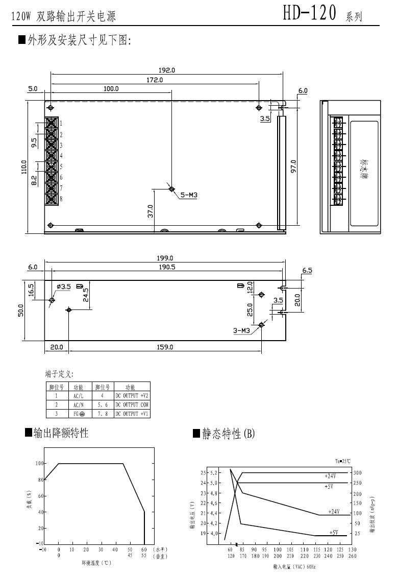 型号规格:HD-120双路输出开关电源 |