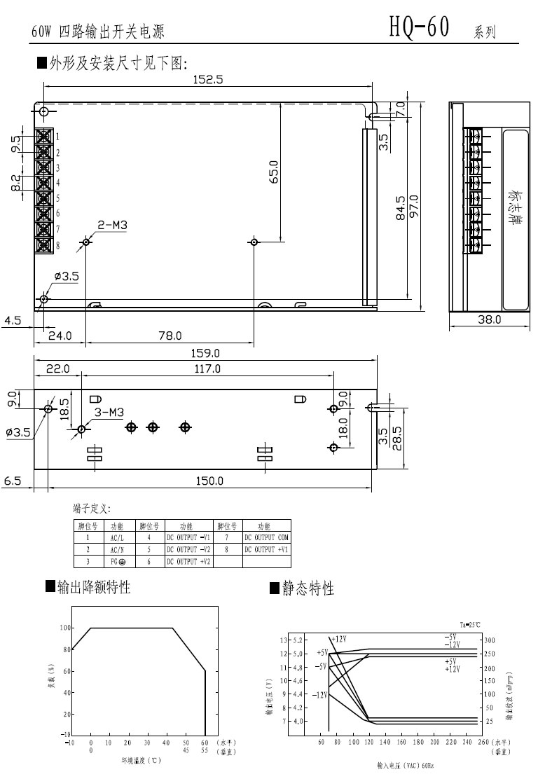 型号规格:HQ-60四路输出开关电源 |