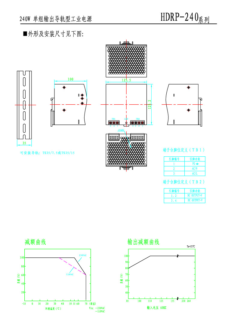 型号规格:HDRP-240单组输出导轨型工业电源